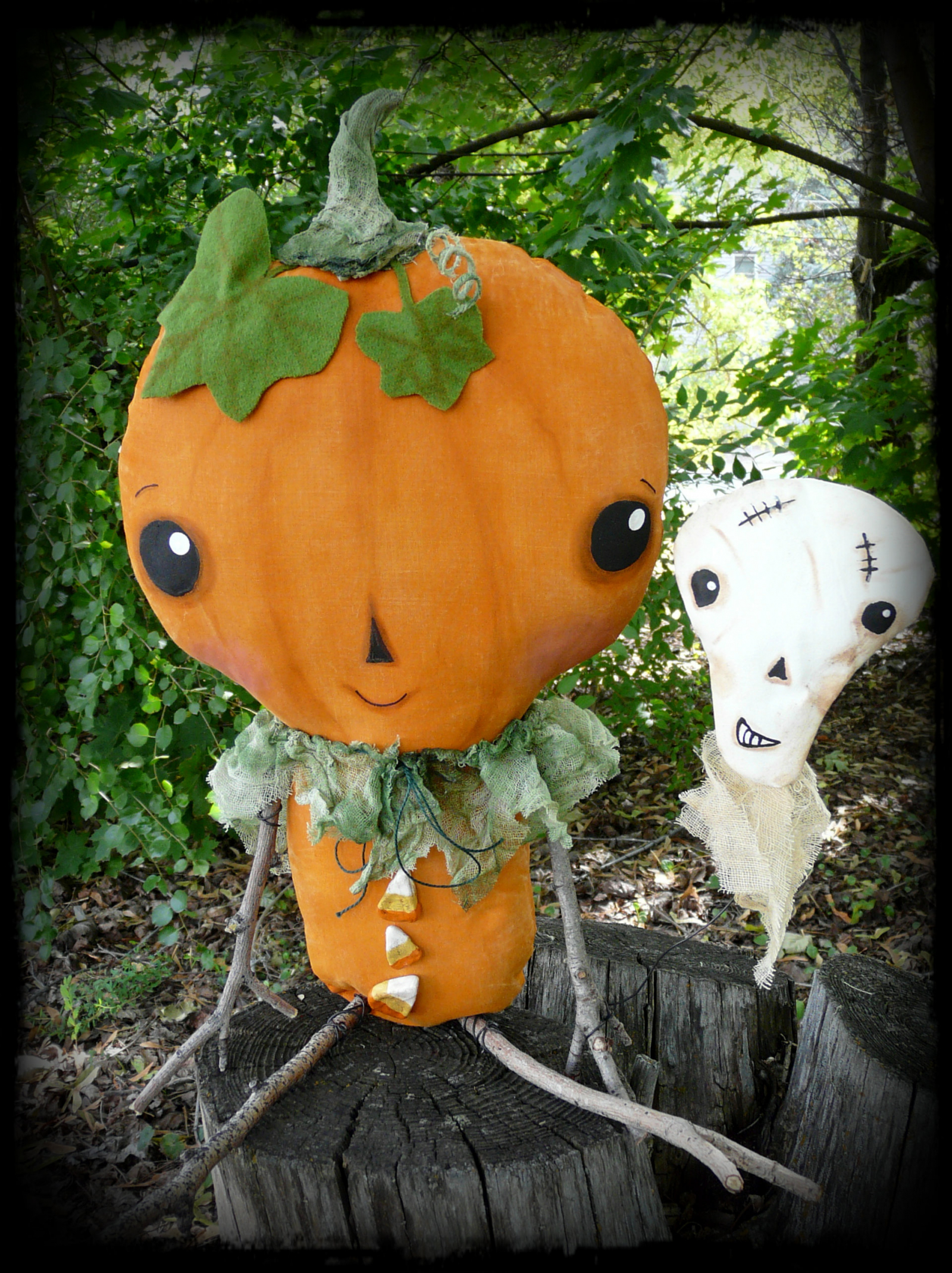 This is a PDF pattern of: Cutest pumpkin in the patch- Prim pumpkin doll and skull balloon pattern- #335.