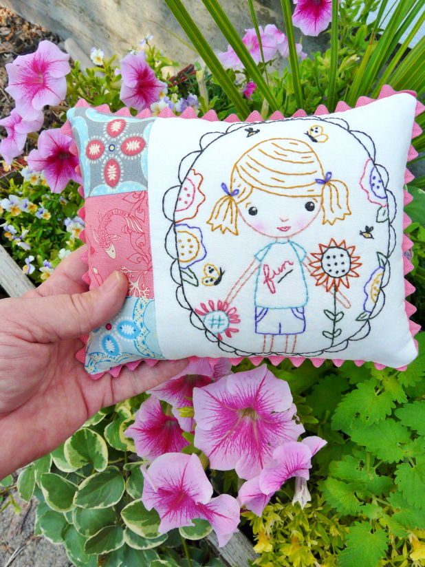 Girls just want to have fun!Embroider this sweet girl in a garden of pretty flowers, with bees and butterflies.